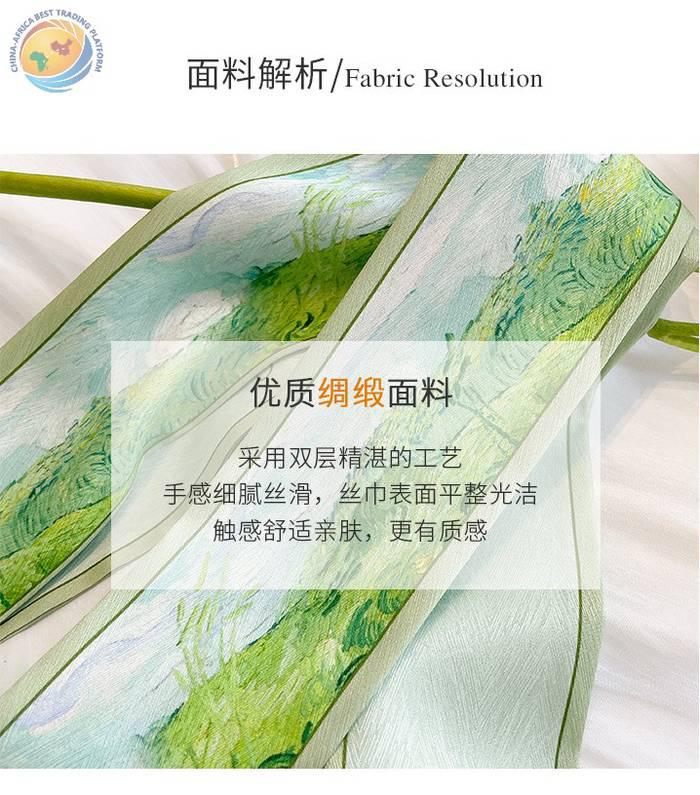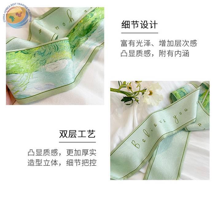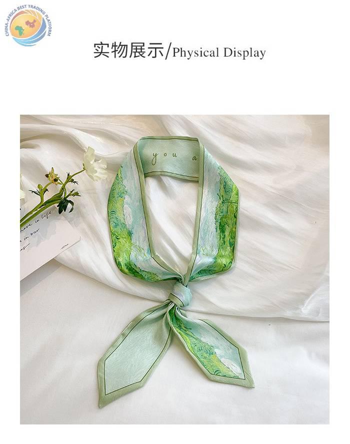 Spring/summer flower print oil streamer long silk scarf for women narrow South Korea