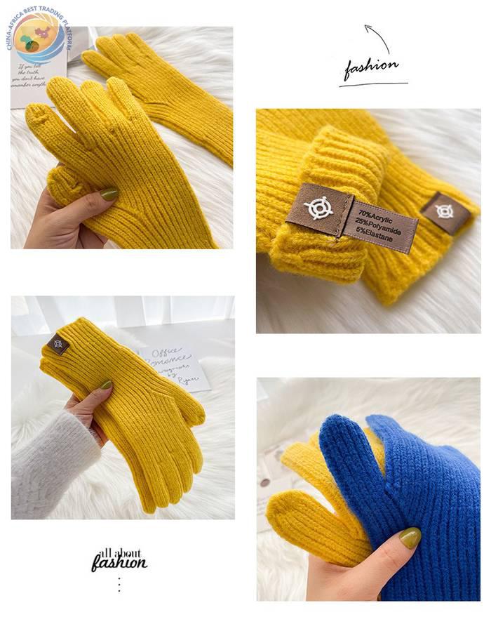 克莱茵蓝毛线针织纯色韩代手套秋冬保暖