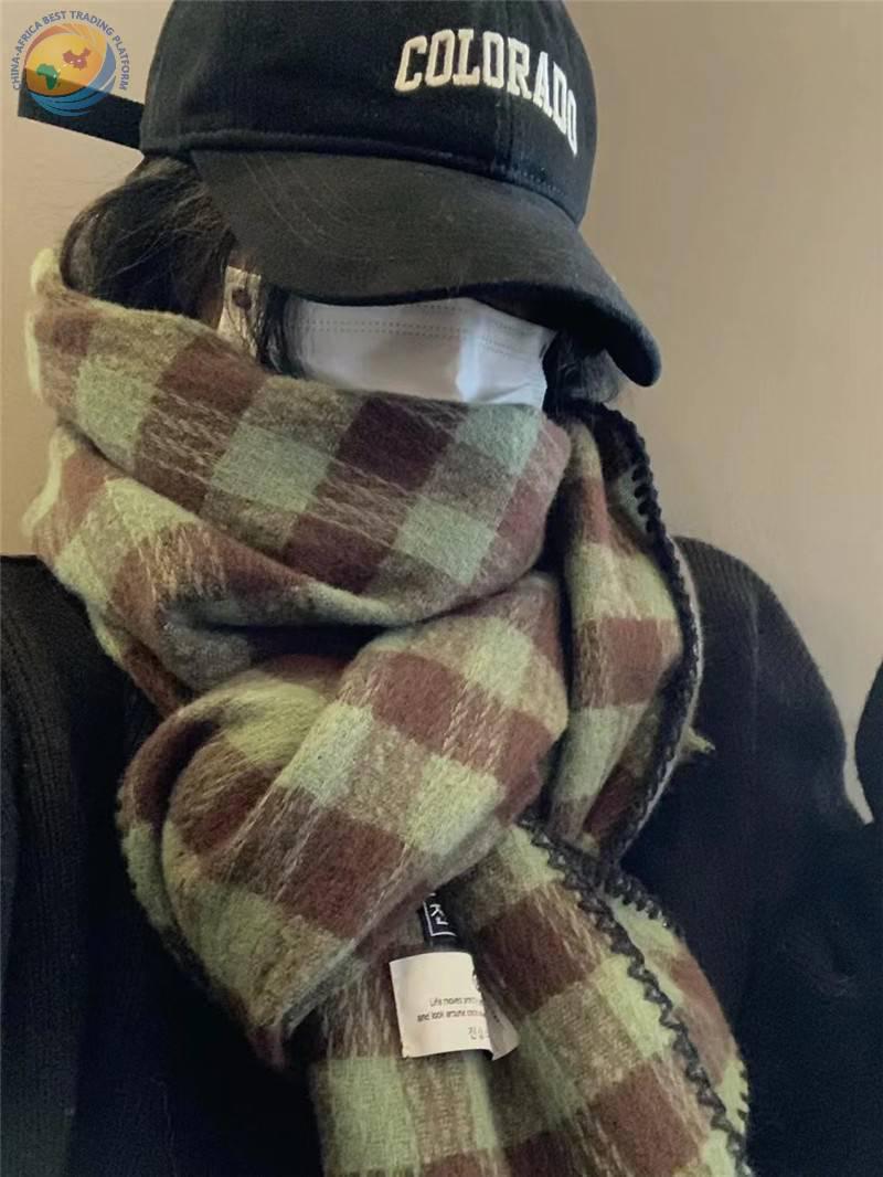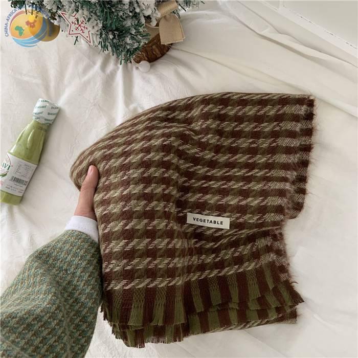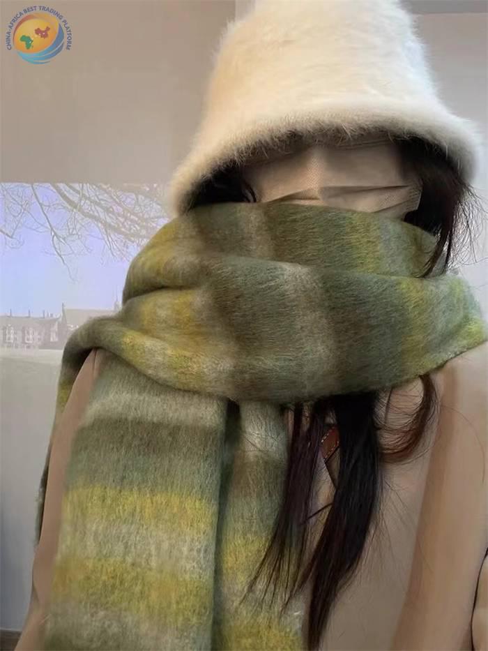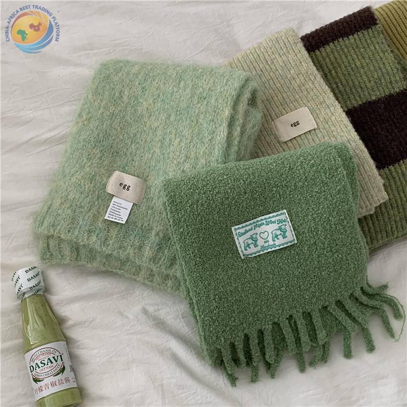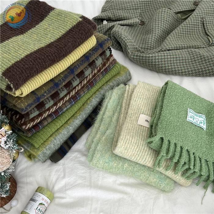 巨显白复古绿色系围巾