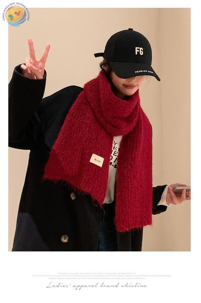 甜美风含羊毛混纺针织围巾女冬季韩版ins