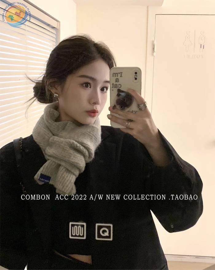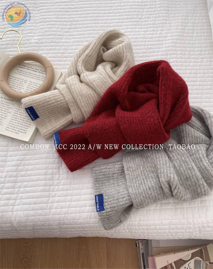 冬季加厚保暖围巾女韩国百搭纯色短款针织