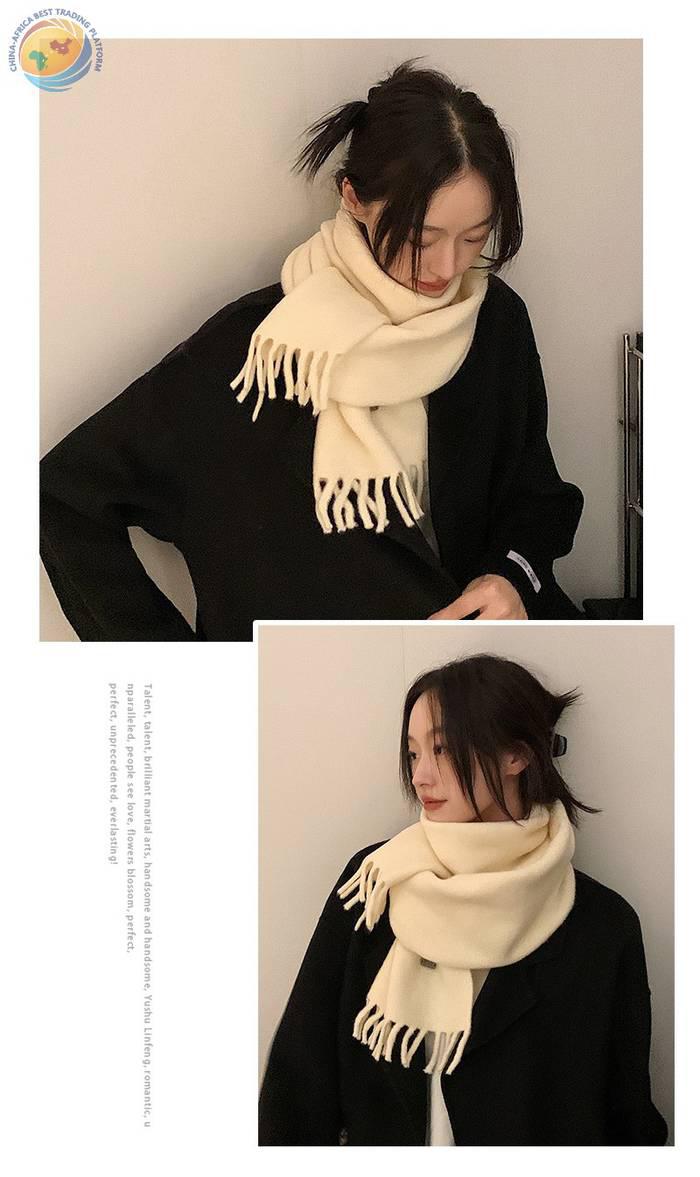 韩国流苏百搭护颈围脖含羊毛米白色小围巾