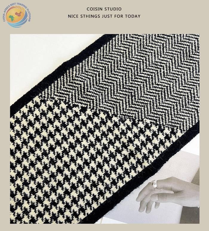 日系复古拼接千鸟格短款小围巾女秋冬保暖