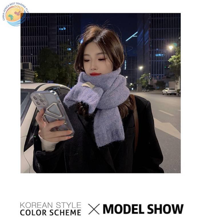 网红风含羊毛韩版紫色围巾女生秋冬季显白