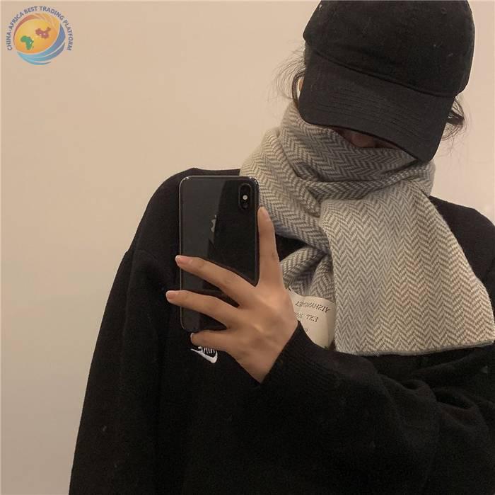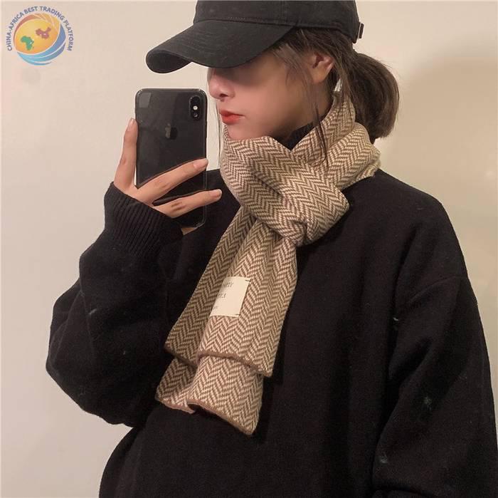 韩国复古时尚人字纹贴布小围巾保暖