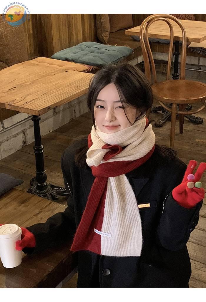Snail climb home Korean version of Instagram minority color red woolen scarf woman