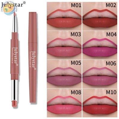 欧美跨境双头口红唇线笔不掉色不沾杯粉色旋转口红笔外贸彩妆批发