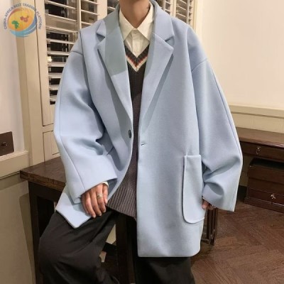 外套男士潮牌宽松西装领风衣潮流秋冬款外套