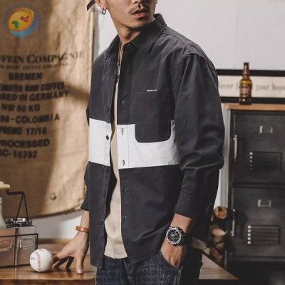 撞色衬衣外套男士衬衫长袖男休闲秋季衬衫