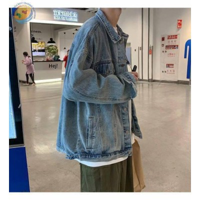 美式复古蓝牛仔外套男士宽松百搭休闲夹克春秋季
