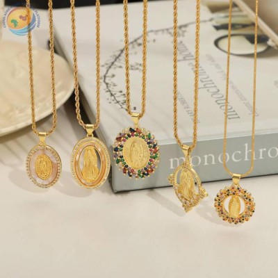 复古轻奢钛钢镀金圣母玛利亚吊坠项链