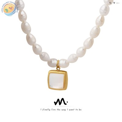 法式巴洛克淡水珍珠链天然白海贝吊坠项链