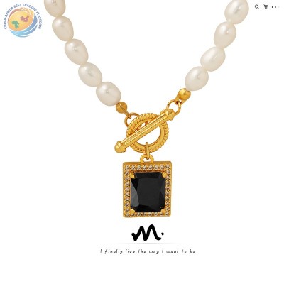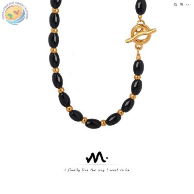 光泽项链重工黑锆石吊坠OT扣锁骨链镀金
