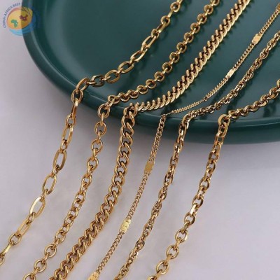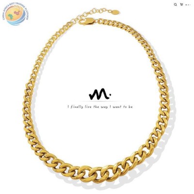 欧美风嘻哈夸张钛钢古巴链镀18K真金粗链条项链
