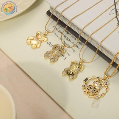 日韩清新小众钛钢镀金镶满钻动物小熊铜吊坠项