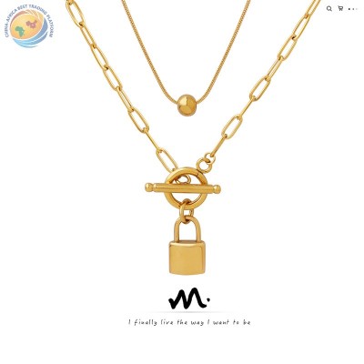 冷淡ins风潮款OT扣两戴锁头钢珠吊坠叠戴钛钢项链