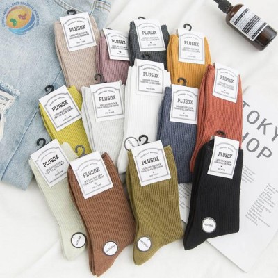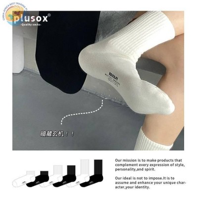 plusox 袜子女中筒袜ins潮黑色运动秋冬情侣白色短袜纯色配皮鞋男