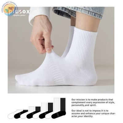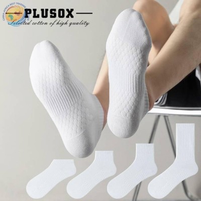 Plusox纯棉袜子男长筒袜黑白纯色中筒女袜ins夏季全棉运动学生短