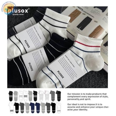 plusox条纹袜子横杠男船袜浅口女夏季透气薄款吸汗防滑短袜潮低帮