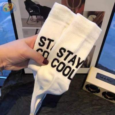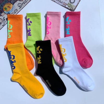 女中筒袜潮牌原宿学院风文字街头滑板运动棉袜