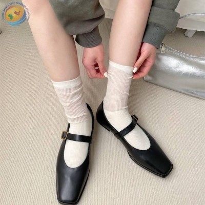 春夏薄款袜子女拼接针织纯色卡丝堆堆袜ins日系走秀款竖条中筒袜