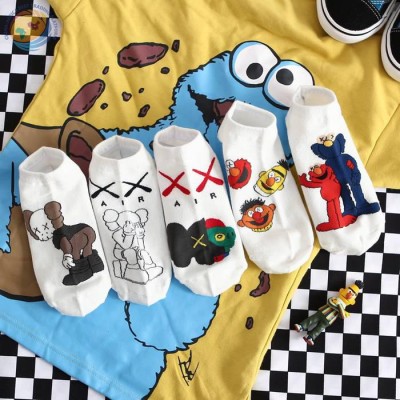 韩国潮牌联名芝麻街卡通船袜经典涂鸦隐形袜男女情侣薄款纯棉袜子