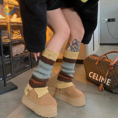 英伦美式学院辣妹拼色撞色堆堆针织毛线腿套