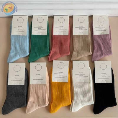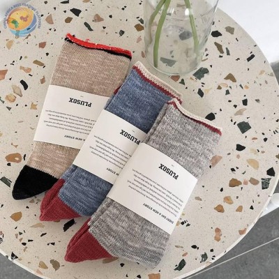 Korean casual pile socks autumn and winter high quality solid color mid-tube socks