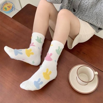Rabbit midtube socks Lovely Japanese coral velvet sleeping socks moon socks