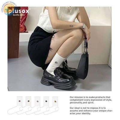 plusox 袜子ins潮中筒袜刺绣情侣男女长袜笑脸彩虹心态学院风潮牌