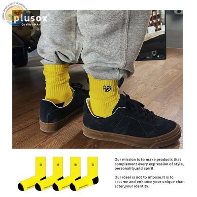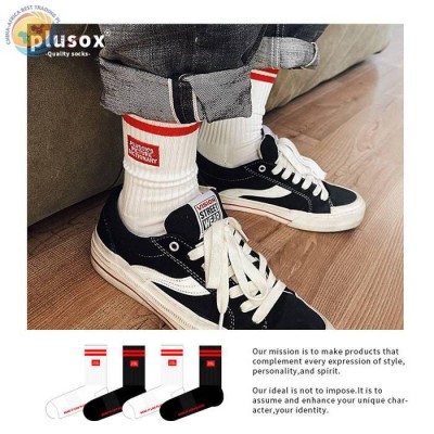 plusox长款中高帮针织男女条杠袜欧美网红绣标字母袜毛巾底运动袜