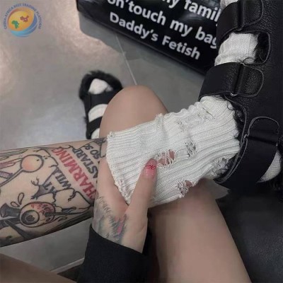 破洞袜男女ins潮百搭网红彩色复古做旧乞丐袜中筒棉袜粗线堆堆袜
