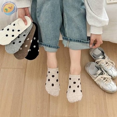 日系小波点船袜夏季薄款隐形袜可爱ins潮流简约百搭纯棉防滑袜子