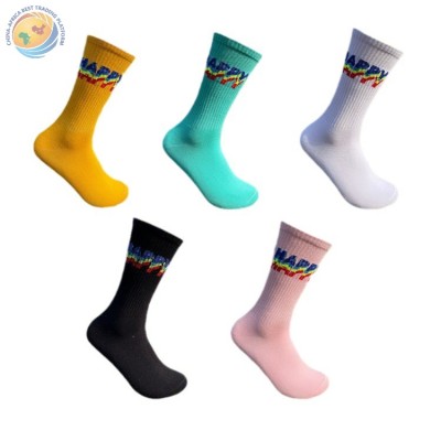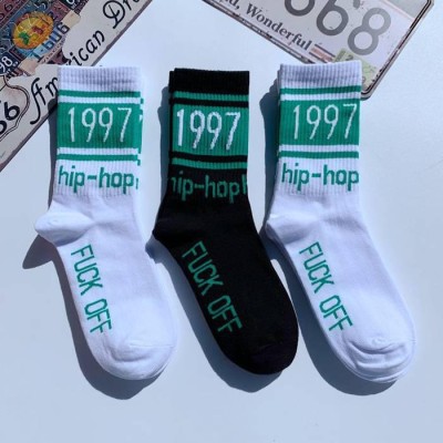 South Korea Harajuku Port wind number striped letters medium tube cotton socks for men and women