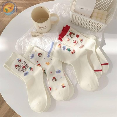 Fairy town sock women's middle tube ins tide all Korean spring and summer lovely flower sweet all students female socks