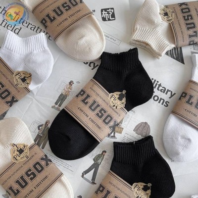 Coarse needle knitted cotton breathable wicking with vintage short boat socks