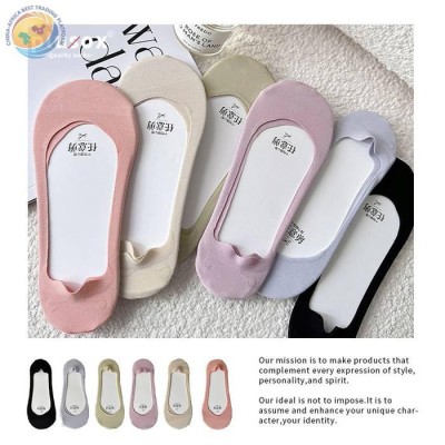 Women\'s ice silk boat socks summer thin cotton bottom low top shallow mouth invisible socks