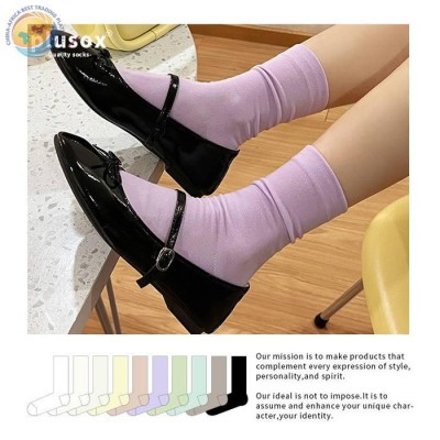 Japanese thick line mid-tube socks ins solid color Korean thick women\'s socks dopamine color