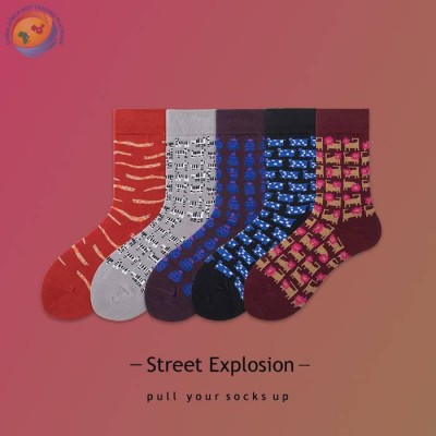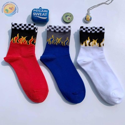Men\'s and women\'s flame check letter cotton mid-tube socks Street harbor wind sports socks