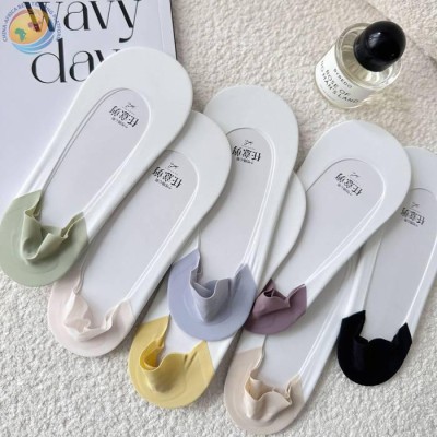 Women\'s ice silk boat socks summer thin cotton bottom low top shallow mouth invisible socks