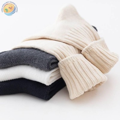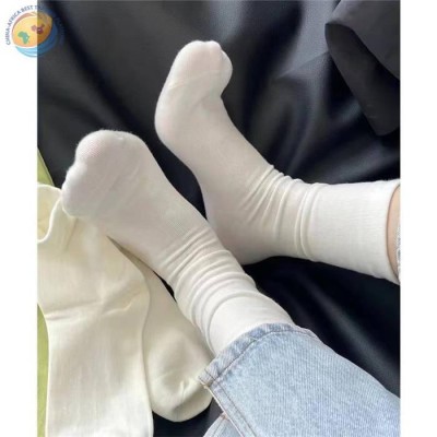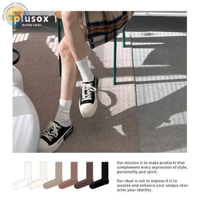 plusox春秋简约基础纯色松口抽条女中筒袜堆堆袜双子ins女袜长袜