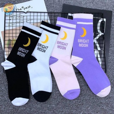 棒球棉袜子月亮款字母情侣袜粉色中筒袜长袜