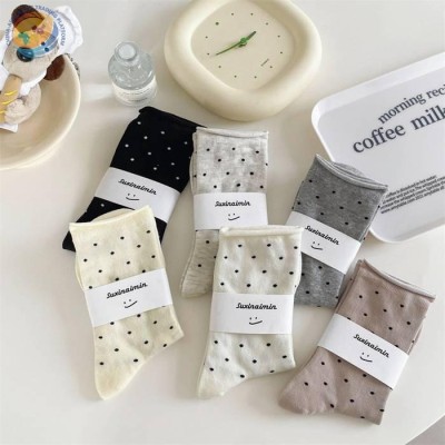 袜子女春夏ins潮复古奶油系卷边点点中筒袜