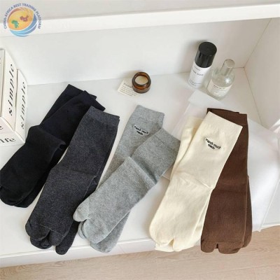 创意分趾袜子女ins韩国春秋网红无骨中筒袜后跟字母刺绣纯棉女袜