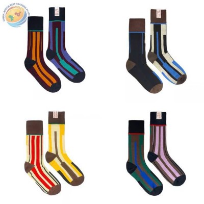 潮牌欧货新品hello彩色拼接个性AB袜跳跳舞网红运动布标中筒棉袜