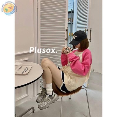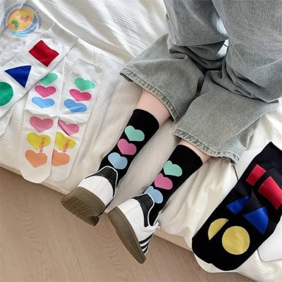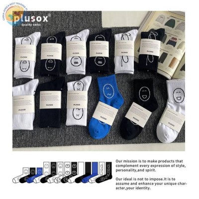 plusox袜子女中筒春夏笑脸情侣纯色简约ins潮网红款透气柔软棉袜