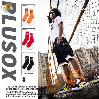 Plusox 秋冬INS原宿风街头欧美男女个性潮流棉袜 中筒袜 运动袜