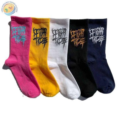 日系学院风欧美街头滑板情侣24字母运动棉长袜