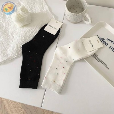 袜子女中筒棉袜春夏秋款彩色点点ins潮黑白