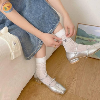 透气甜妹蝴蝶结中筒袜纯色日系竖条JK走秀堆堆袜